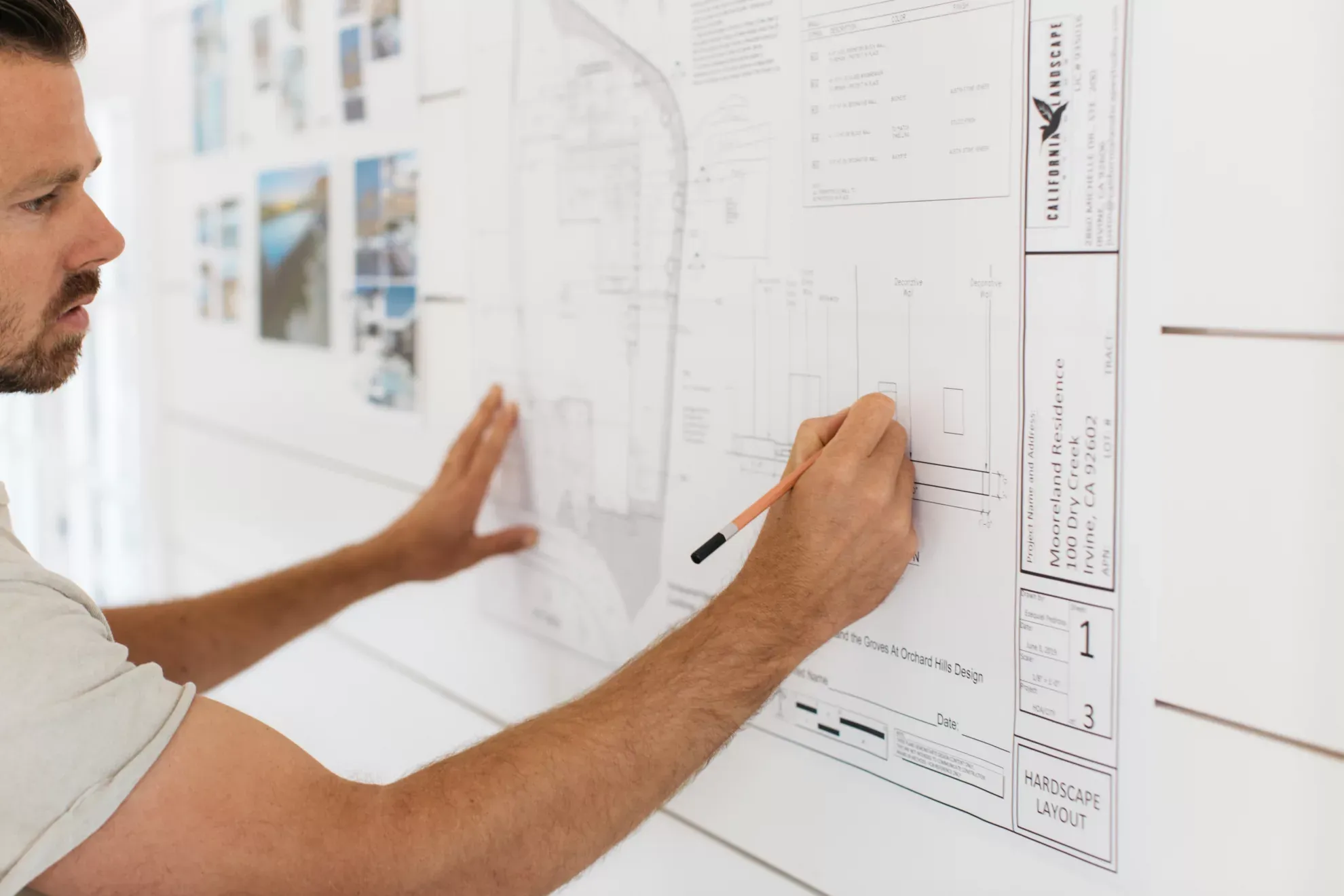 No need! Because we design for clients all over the world, our work is set up to be completely remote. If you do happen to be in either LA, or Orange County, CA then we can schedule one of our designers to come out for a site visit once the design contract has been signed.